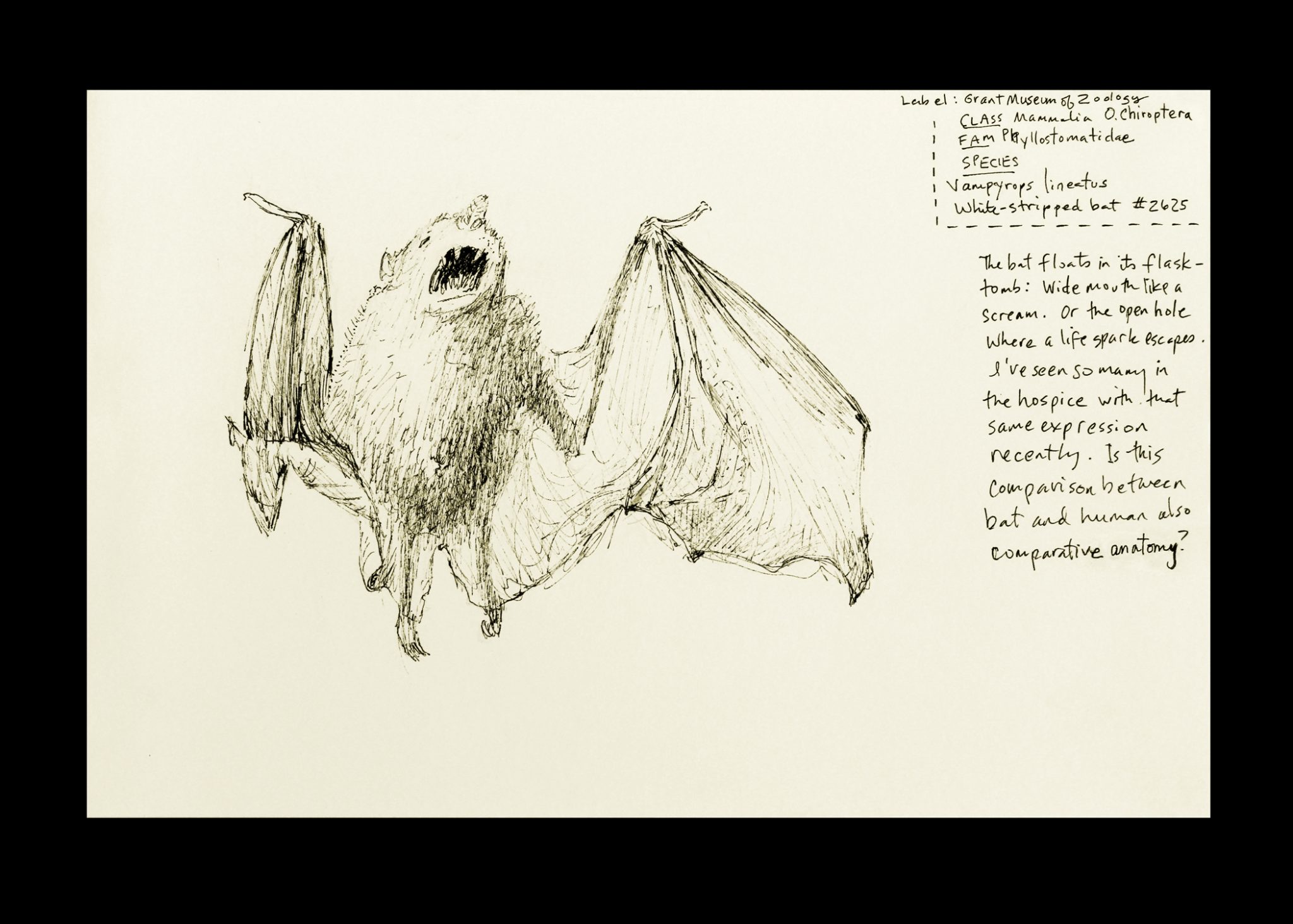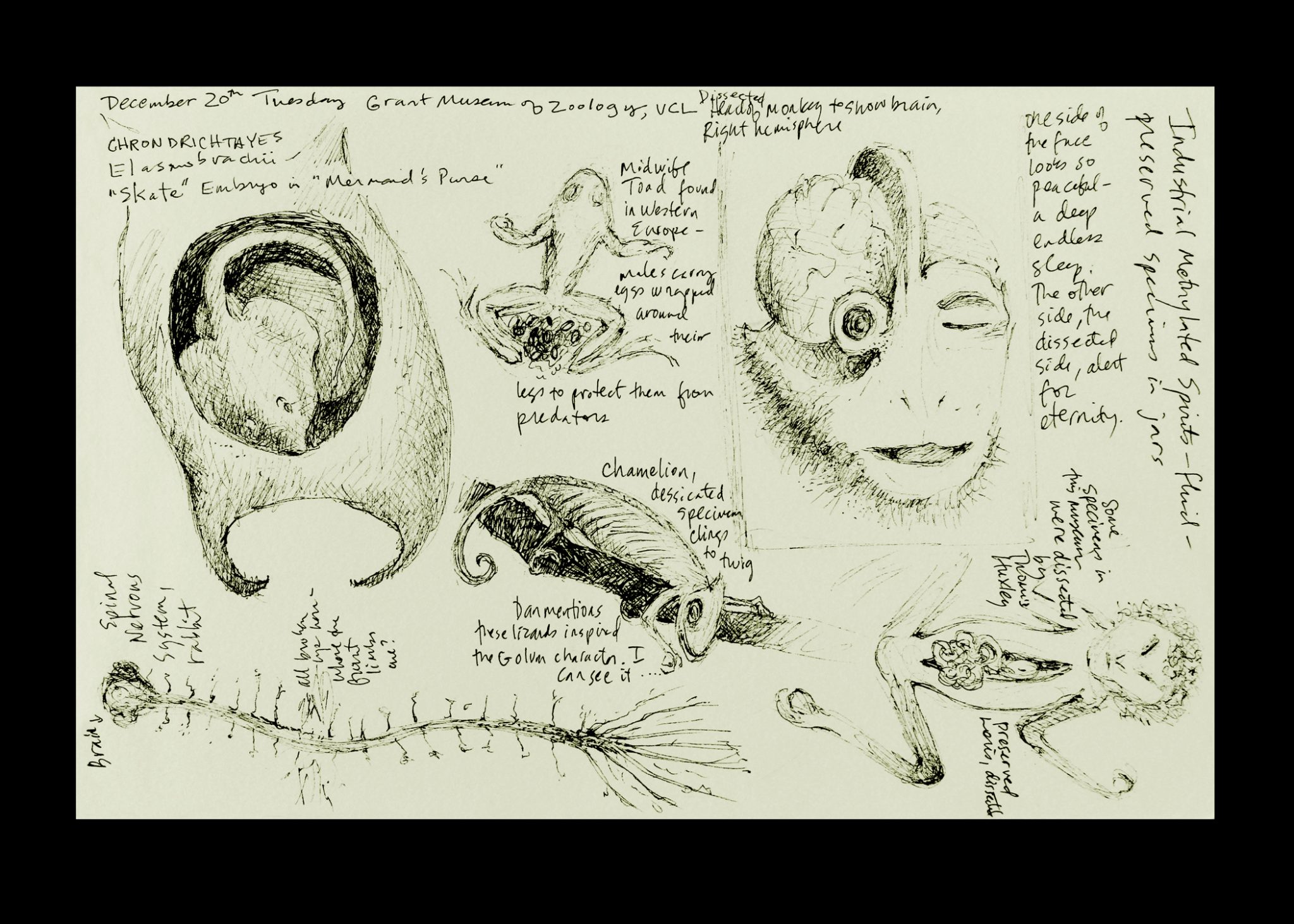 2013-Ongoing    I began drawing at the Grant Museum of Zoology, University College London, in 2013, and continue to do so. It wasn’t until 2019 that I turned the sketches into paintings which have now become my series “Beyond Biology.”