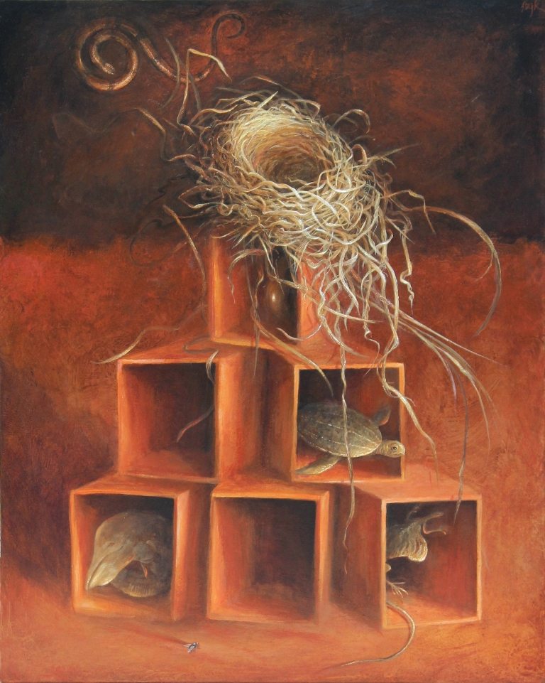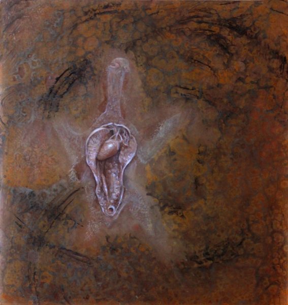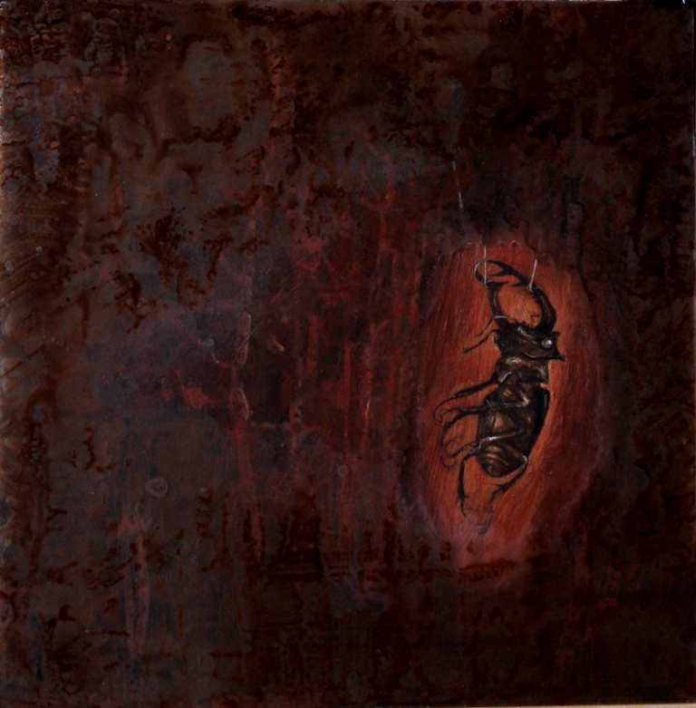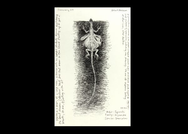 I spend a month or more in England every year. During this time you can find me drawing at London’s Grant Museum of Zoology (founded as a teaching collection in 1828), where old specimens float in jars of methylated spirits or peer from glass cases. There’s a range of animals boxed or shelved or pickled there, from extinct dodo bones to a common pigeon, plucked and sliced open, its ashen heart revealed. Some specimens were even dissected by the likes of Thomas Huxley and other contemporaries of Darwin. Entering the Grant through heavy wooden doors, I leave the chaotic London streets behind to enter this quiet cabinet of curiosities. I’m in my element there since I’m obsessed with how we alter the living world through collecting. But what lures me to draw certain specimens? It's difficult to explain. (A taxidermied animal posed in a “habitat” wouldn’t have the same effect.) At one time, I thought it was a gut reaction because I often feel the animal’s gesture within my own body. Yet while that’s part of it, there’s something more. That “something” has to do with the animal's remote expression, an expression far removed from the creature’s scientific purpose, while also equally removed from what it once was in the wild. After drawing at the Grant, I transpose my quick studies of each specimen—be they whole or dissevered—into painted portraits. I nestle those images beneath layers of suggestively painted Plexiglas, rewilding the animals not to the natural world but to our own untamed vision, beyond biology. [caption id="attachment_9702" align="aligncenter" width="768"] Bestiary (Stag Beetle)   12 x 12 inches    Mixed media    2020[/caption]   [caption id="attachment_2962" align="aligncenter" width="594"]grant museum exterior The Grant Museum of Zoology on Gower Street, London[/caption]
