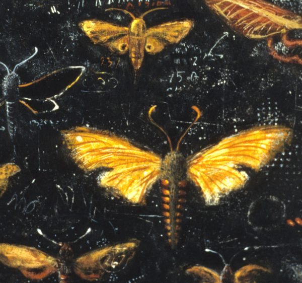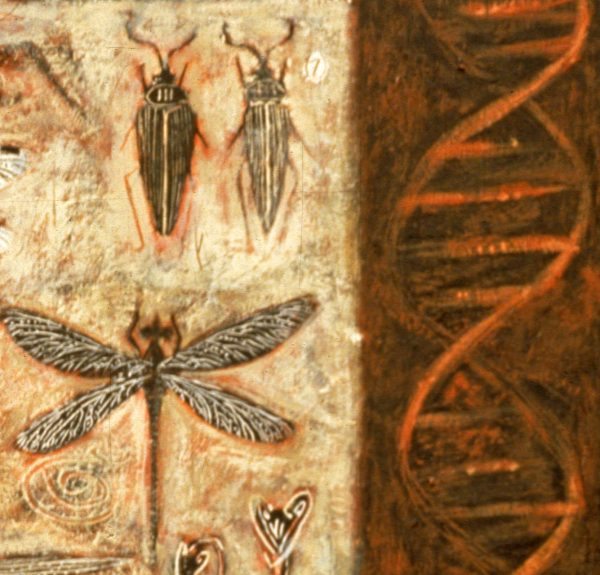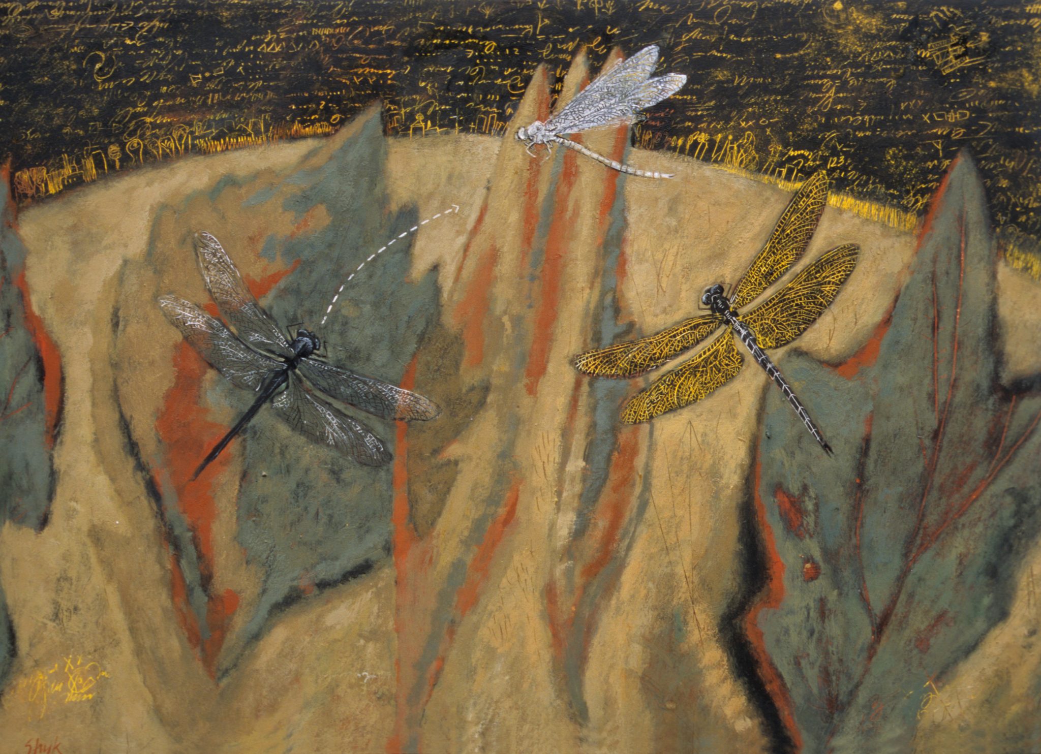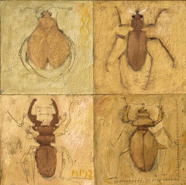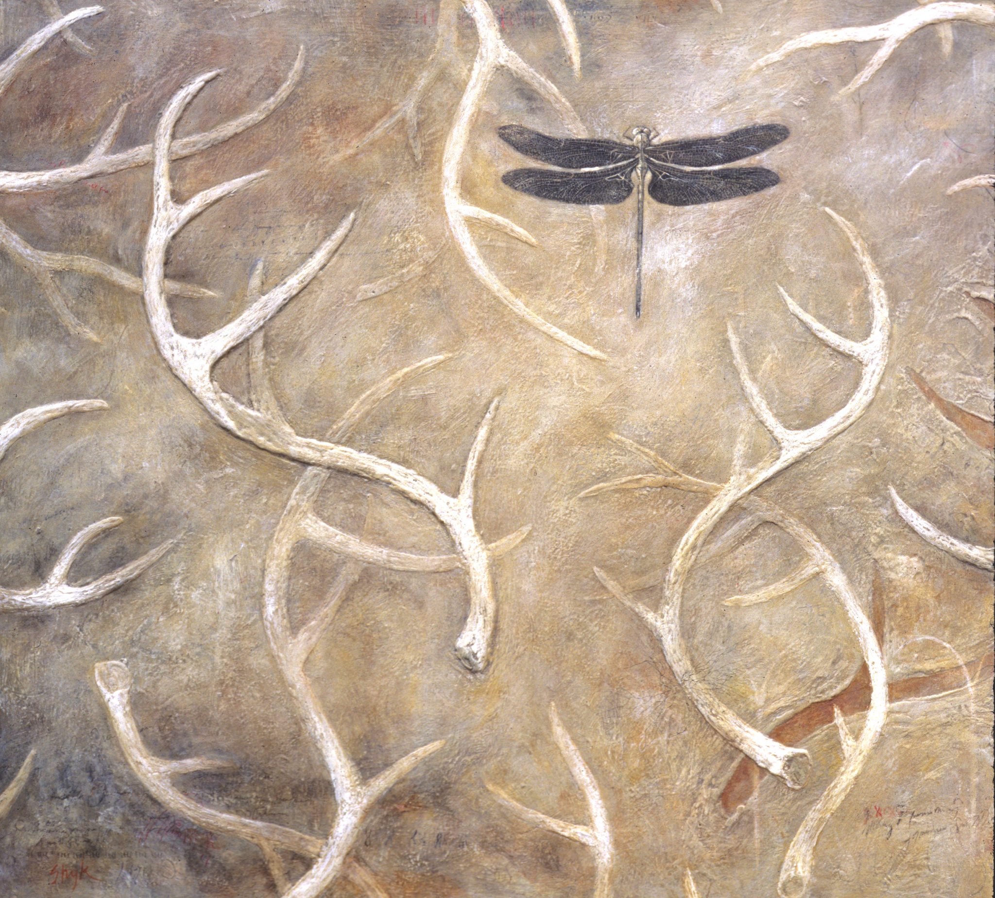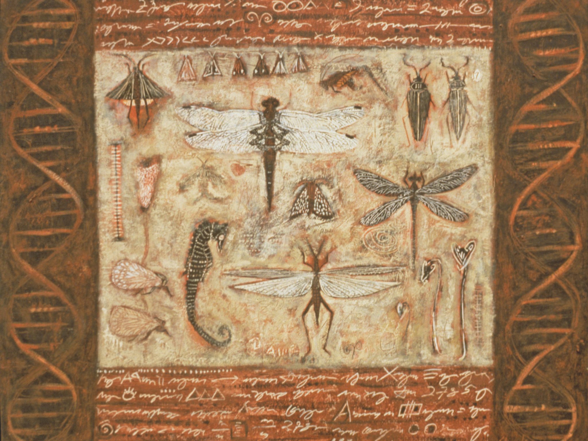 During these years I worked primarily in gouache on paper, exploring ideas about the natural world that are sometimes scientific, sometimes mythological. Often the images suggest archeological relics or fragments. Each of these paintings represents an entire series consisting of anywhere from 15 to 40 works. In 1997 I began developing my techniques with acrylic on wood panel, represented by the last 3 pieces.