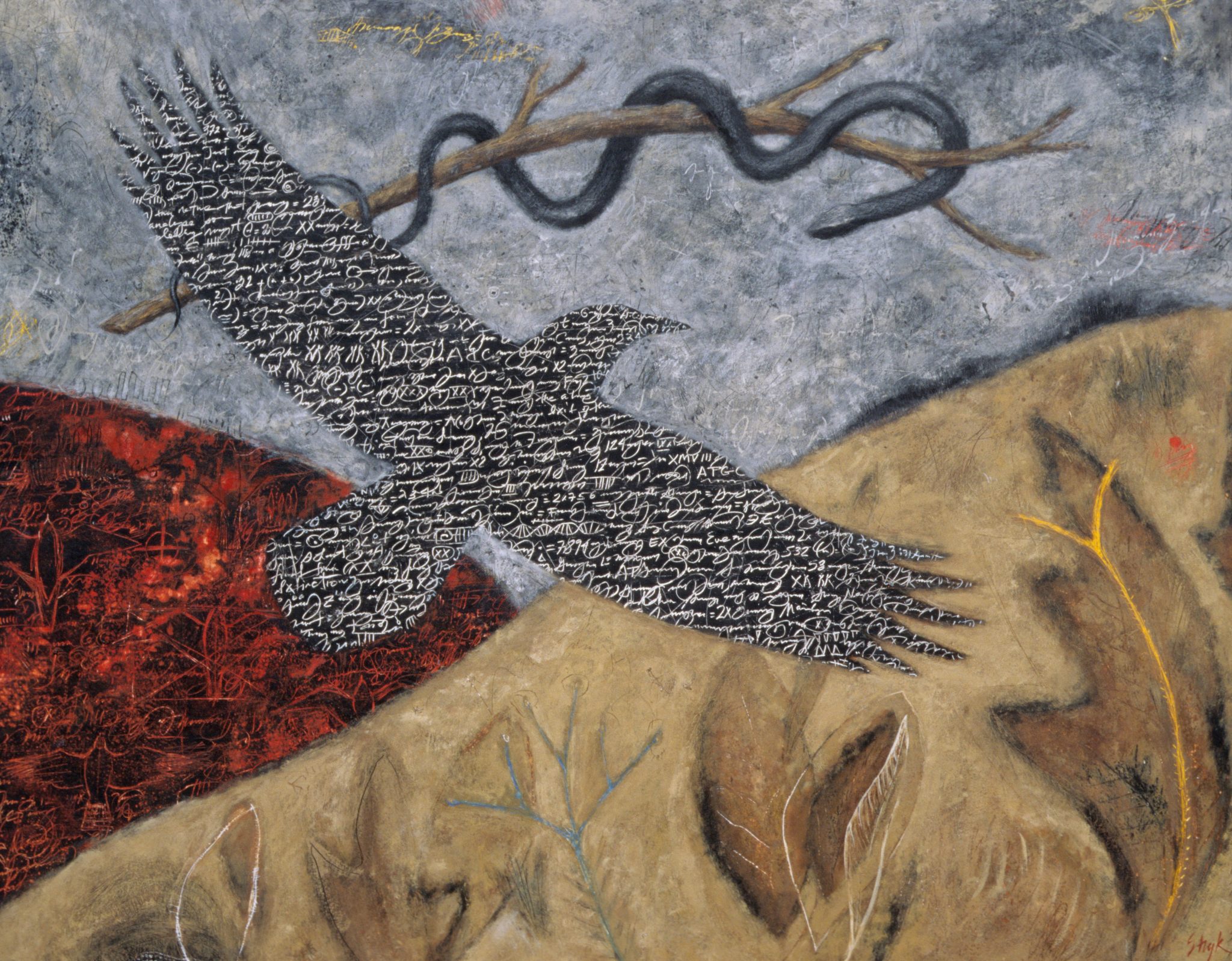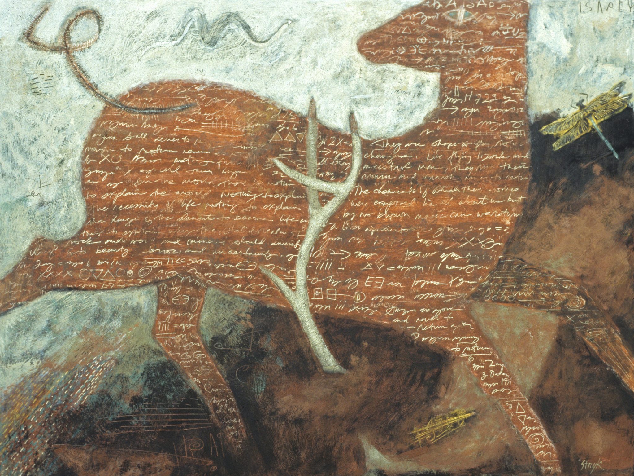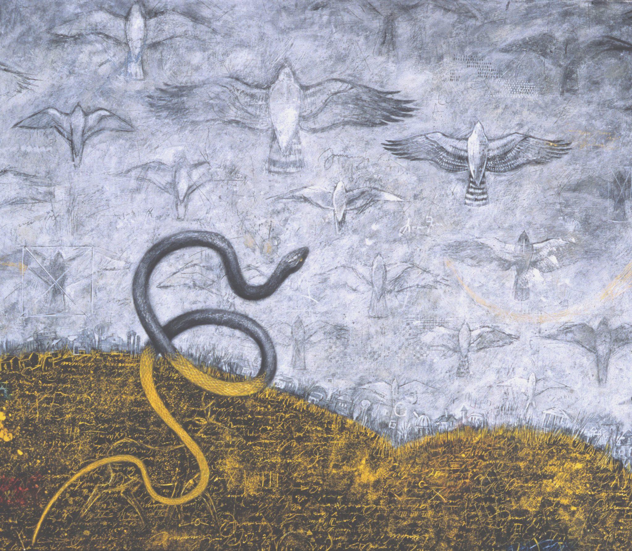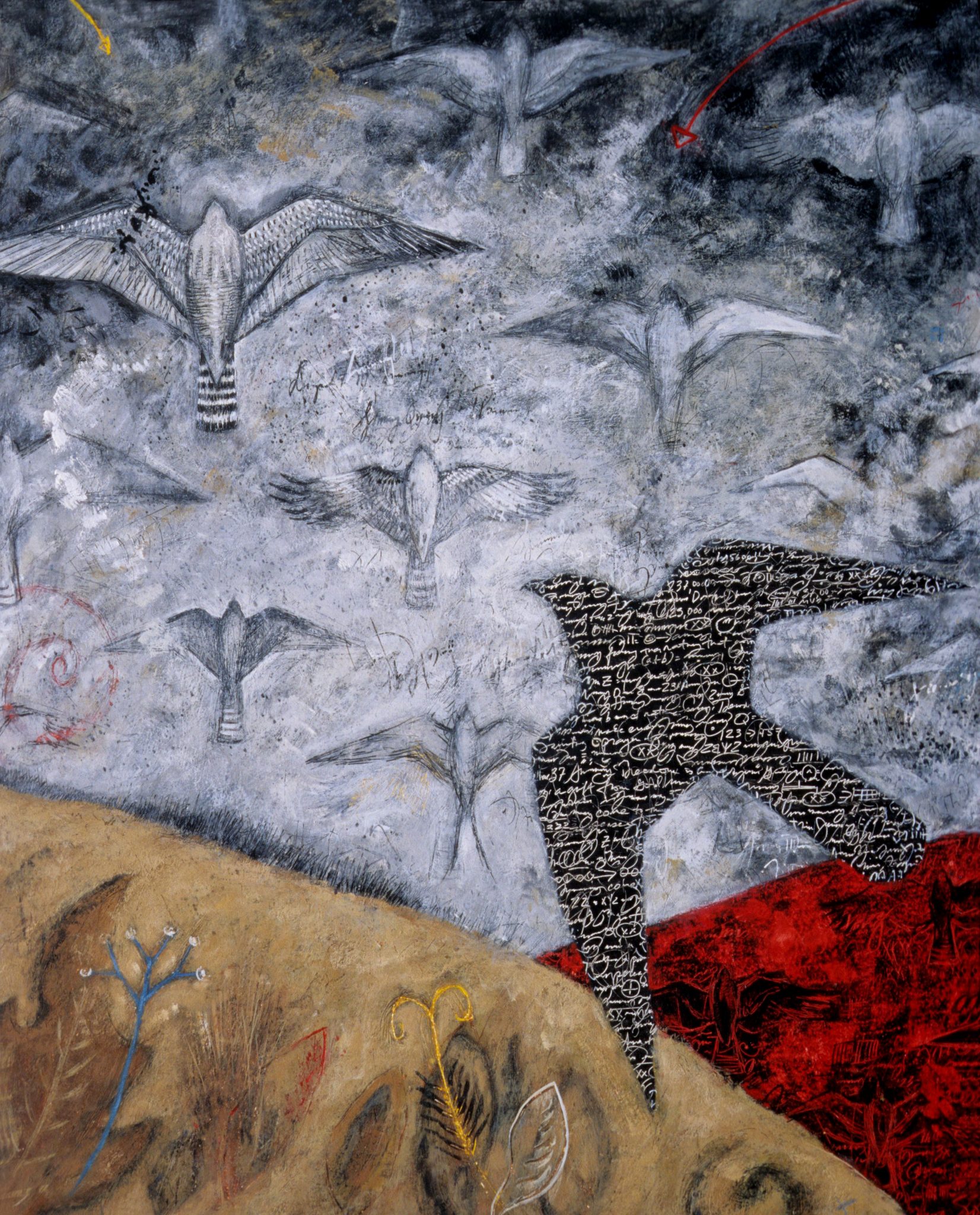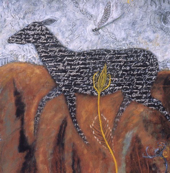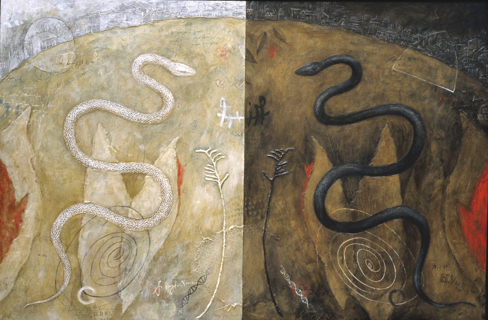 During these years I worked primarily in gouache on paper, exploring ideas about the natural world that are sometimes scientific, sometimes mythological. Often the images suggest archeological relics or fragments. Each of these paintings represents an entire series consisting of anywhere from 15 to 40 works. In 1997 I began developing my techniques with acrylic on wood panel, represented by the last 3 pieces.